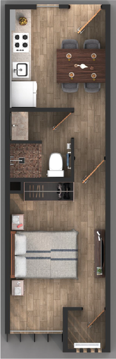Compacto y funcional de 30 m², cuenta con cocina-comedor, baño con closet y una habitación con terraza.